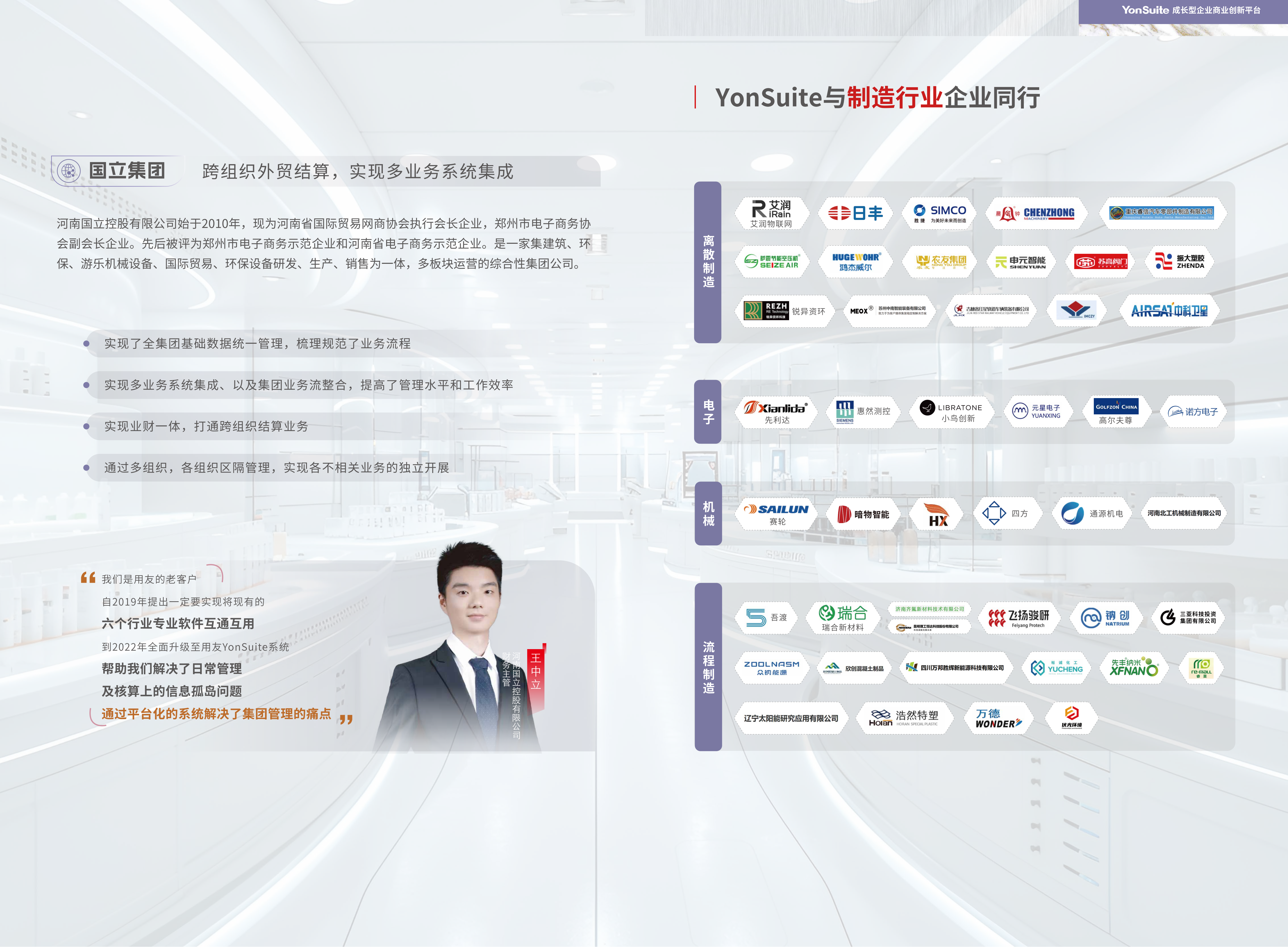 已有超過千家制造企業(yè)通過YonSuite實(shí)現(xiàn)數(shù)字化轉(zhuǎn)型。某汽車零部件企業(yè)通過部署YonSuite,實(shí)現(xiàn)訂單交付周期縮短35%,庫存周轉(zhuǎn)率提升28%;某電子設(shè)備制造商借助YonSuite的智能質(zhì)量管理系統(tǒng),將產(chǎn)品不良率降低了42%。
